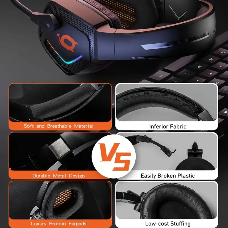 2.4G Wireless Gaming Headset With Noise-Canceling Mic For PC PS4 PS5 Playstation Stereo Sound,Over-Ear Headphones For Laptop,50 Hours Battery, Game Gifts For Men . Christmas Gift.