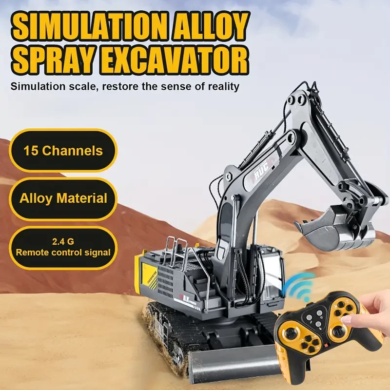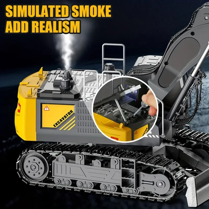 2.4Ghz Big Size Remote Control Toys Engineering Vehicles, Construction Vehicle Model Metal Alloys Can Emit Sound Height Simulation Excavator With Spray Light Children's Toys Christmas Gifts
