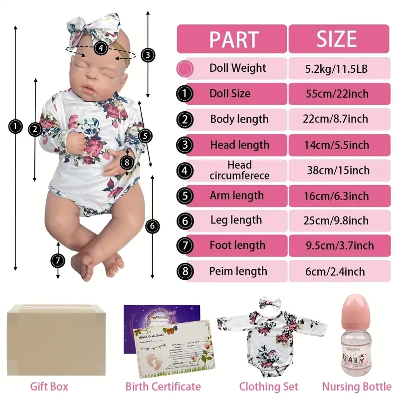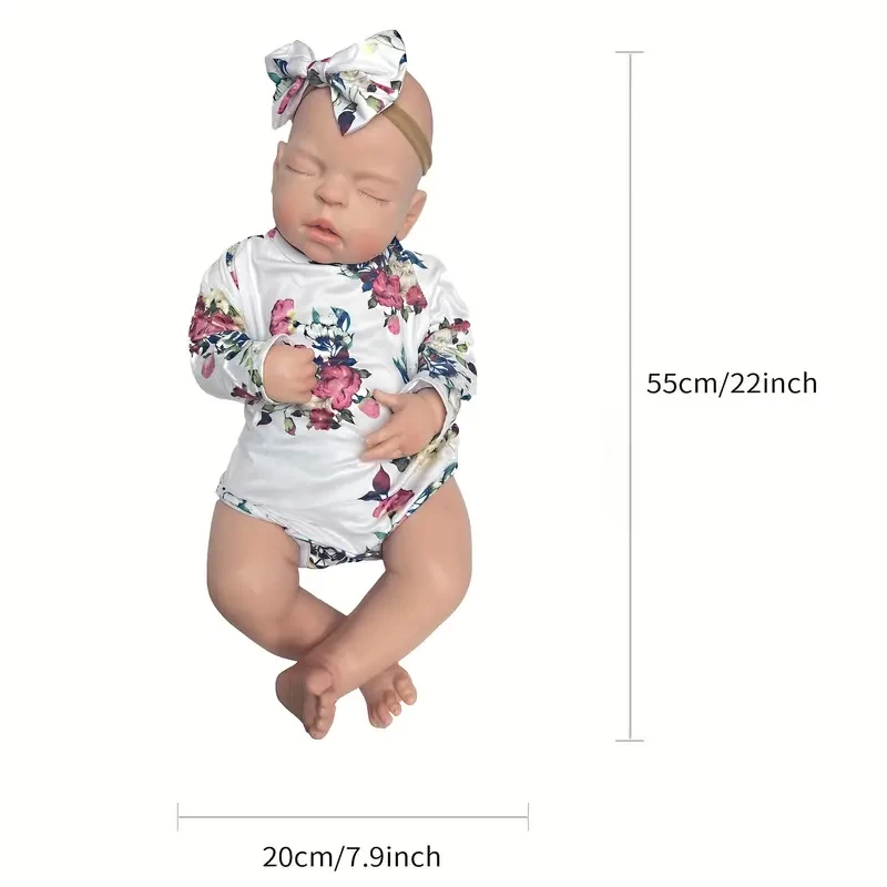 22 Inch/55cm All Silicone Big Sleeping Girl Reborn Doll - A Lifelike Full Body Soft Solid Silicone Newborn Baby Doll Perfect for Collection Gift Halloween/Thanksgiving Day/Christmas gift