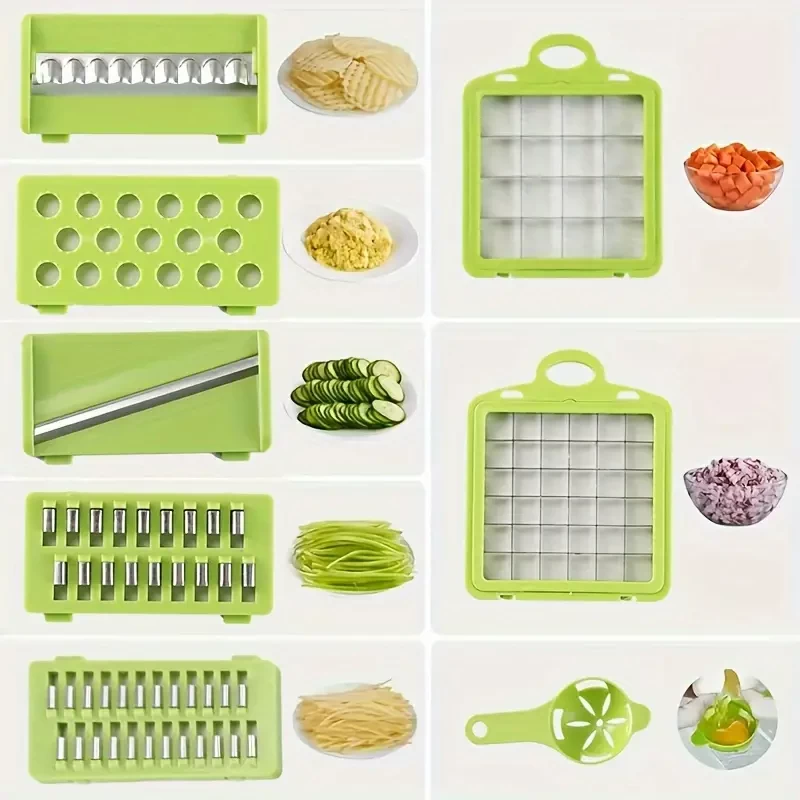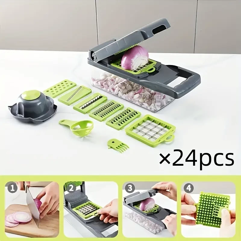 24 Set, Vegetable Chopper, Multifunctional Fruit Slicer, Manual Food Grater, Vegetable Slicer, Cutter With Container, Onion Mincer Chopper With Multiple Interchangeable Blades, Household Potato Shredd