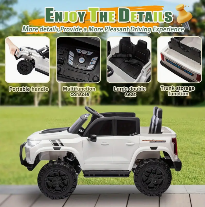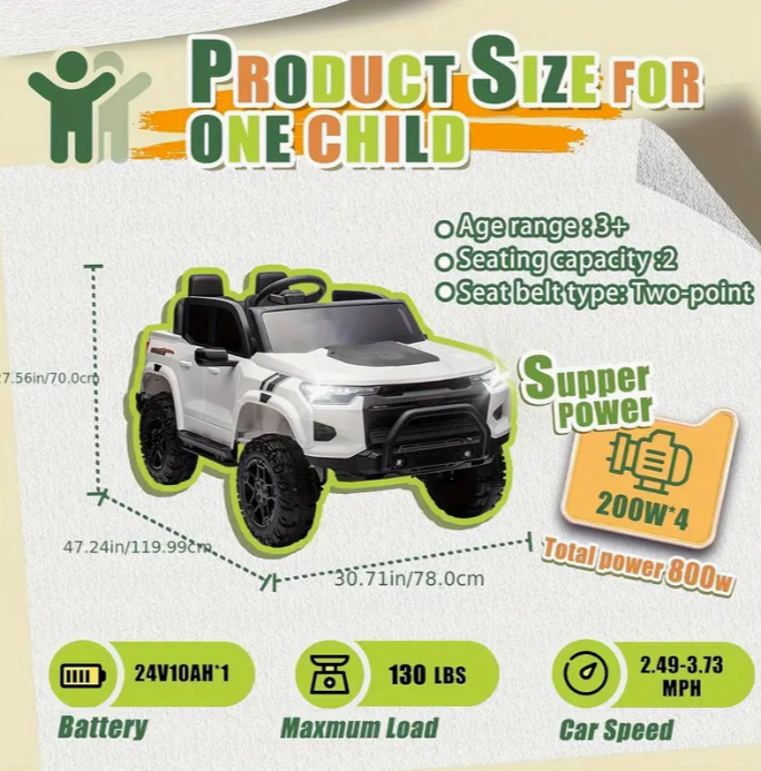 24V Two-seater Kids Ride On Electric Pickup, kids ride on toy W/parents remote control, 4WD 800W motors, Two Safety Belts, High Gate Safety Design, Top warning light, Speed 2.49-3.73MPH for kids aged