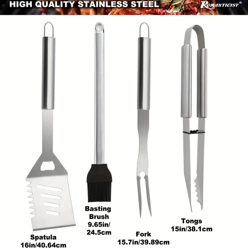 28pcs Heavy Duty Stainless Steel BBQ Accessories Set with Thermometer - Perfect Gift for Birthday, Wedding, and Outdoor Cooking - Includes Grill Set, Thermometer, and Cookware Accessories for Camping,