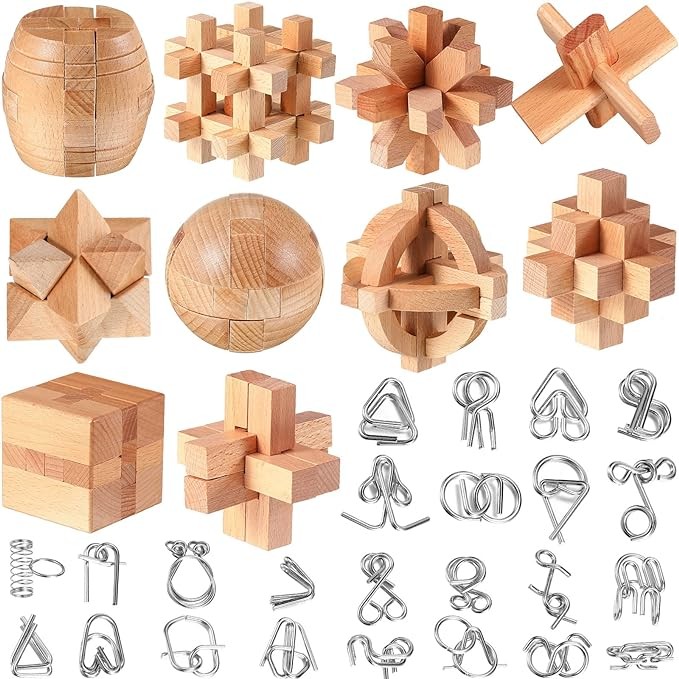 34 pieces of Metal Brain Teaser Puzzle for Children Adult 3D Wooden Mind Game Puzzle Cube Wooden Brain Game Building Block Puzzle Wire Puzzle Unlock double ribbed game Educational Logic Mind tabletop