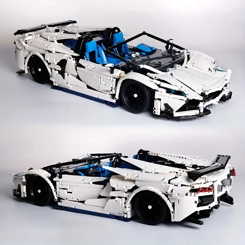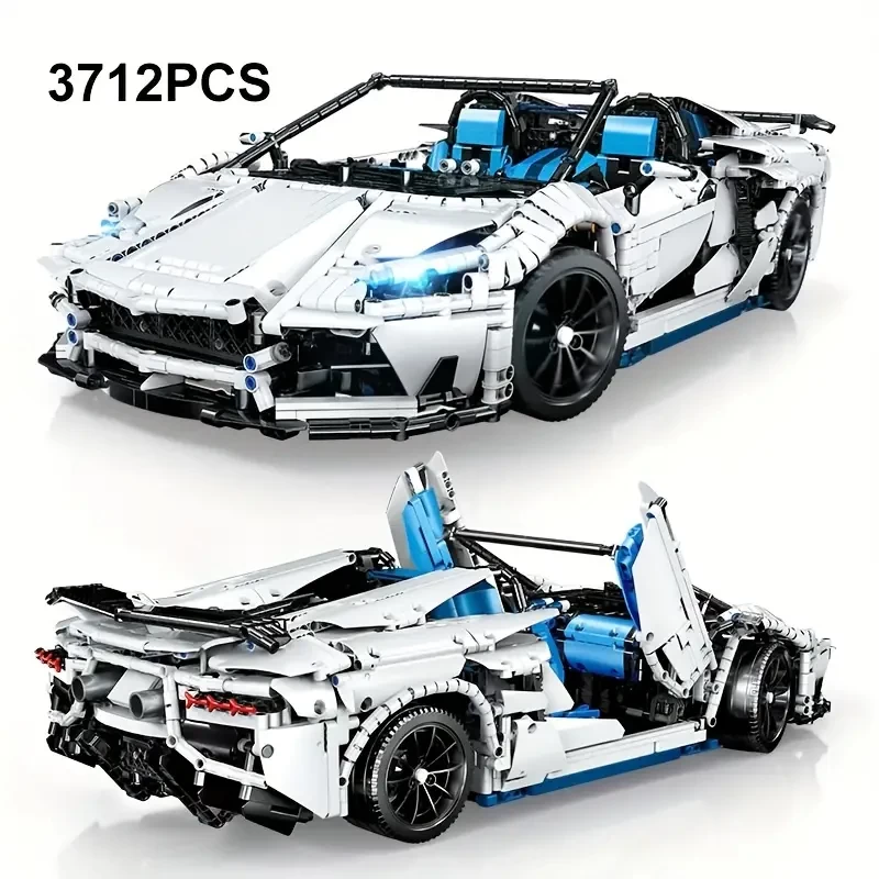 (3712PCS) White Racing Car Building Blocks High-Tech City Sport Racing Car Model Vehicle Assemble Bricks