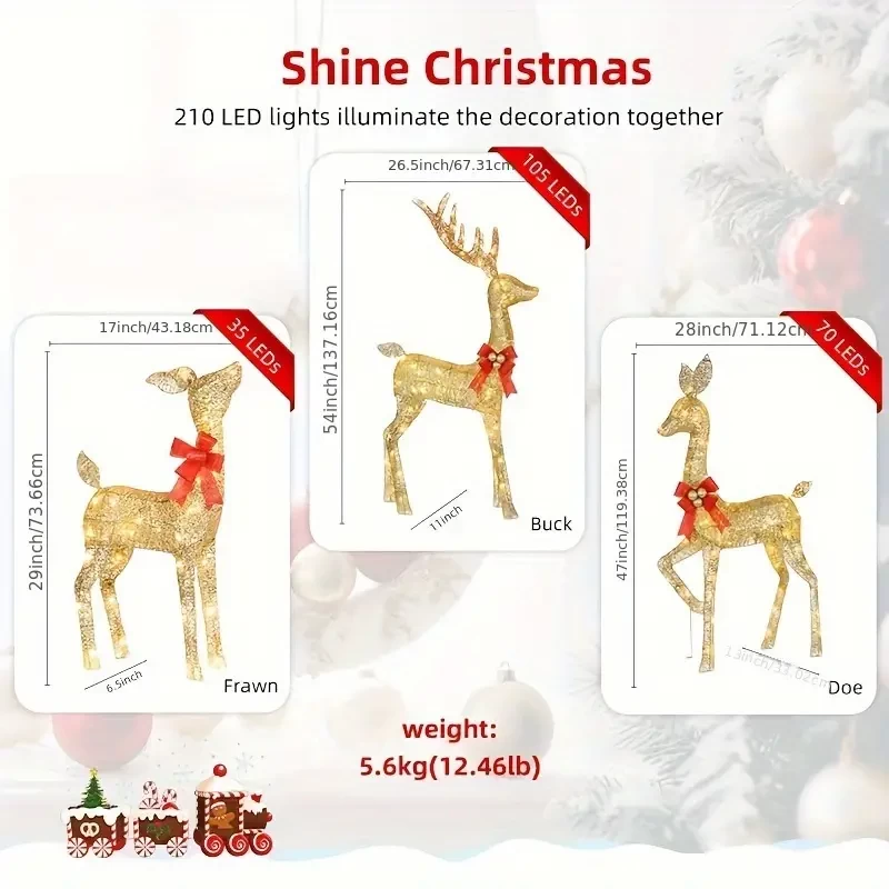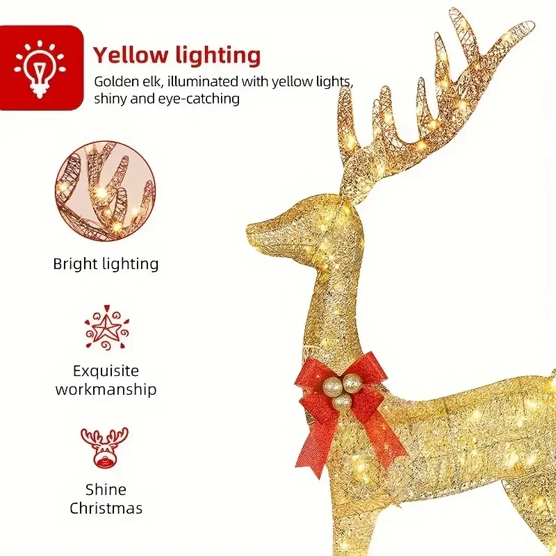 3pcs/set Christmas Iron Ornaments, Creative Christmas Elk Led Luminous Deer Lamp, Holiday Decoration