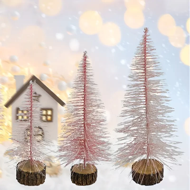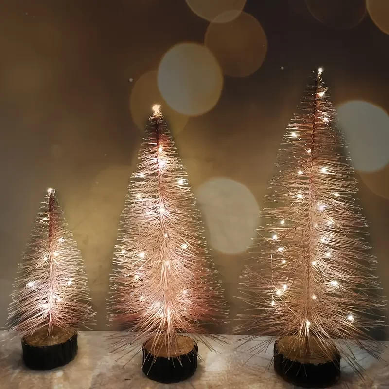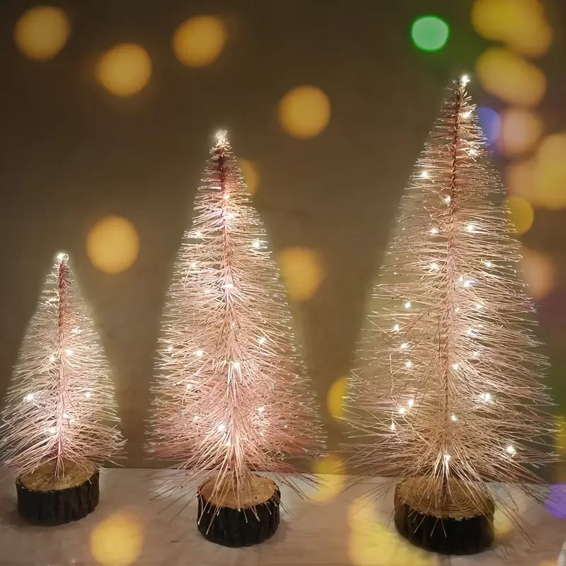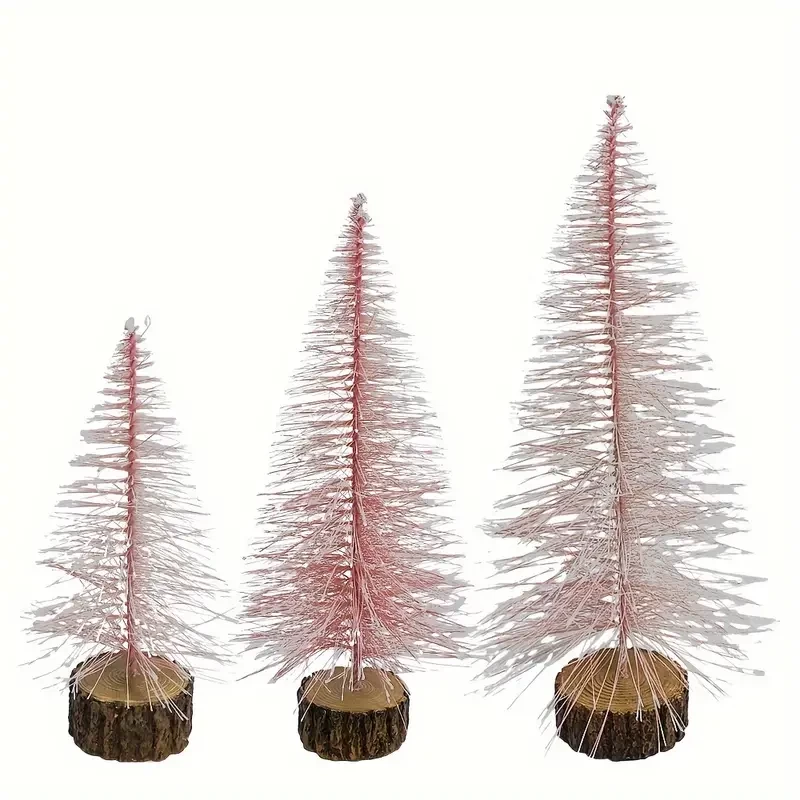 3pcs/set, Glowing Pine Needles Christmas Tree Festive Tabletop Home Decor Pink LED, Navidad, Christmas Decorations Clearance, Christmas Party Favors, Weird Stuff, Room Decoration, Aesthetic Room Decor