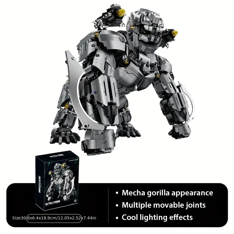 4160pcs Large Size 1:11 Building Block Set, Mecha Series, Super Gorilla Model, Electroplated Limited Edition Bricks, Christmas, Halloween, Thanksgiving Day, Birthday Gift