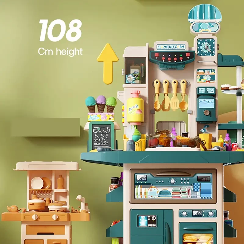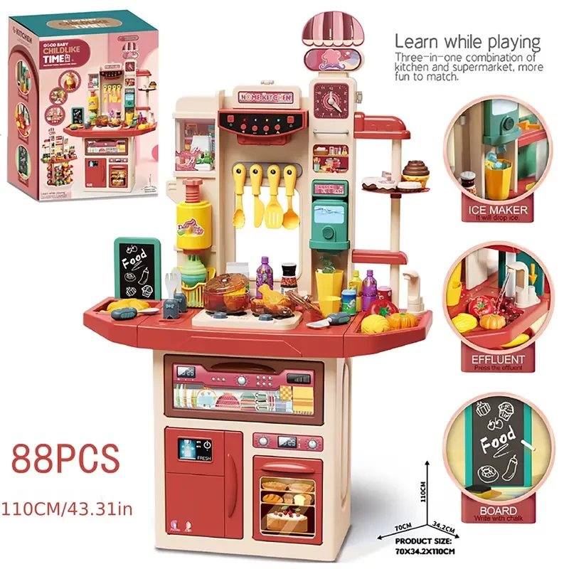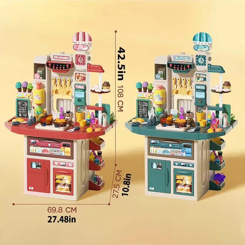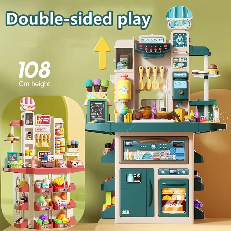 42.52inch Height Double-sided Simulation Kitchen Toy Set, Double-sided Supermarket Shopping Counter Set, Exquisite Playhouse Toys ( Batteries Not Included) (Christmas Gift)