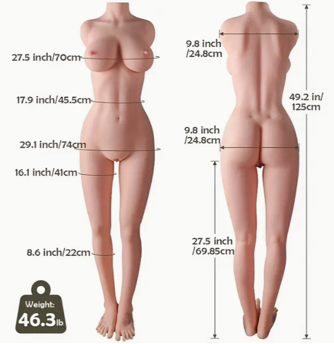 46.3LB Life Size Full Body Male Sex Doll 4.1FT, Sexy Real 3in1 Adult Sex Doll, Suitable for Vaginal Anal Breast Sex Doll, with Flexible Torso Lifelike Scale Love Sex Doll for Men's Sex Pleasure