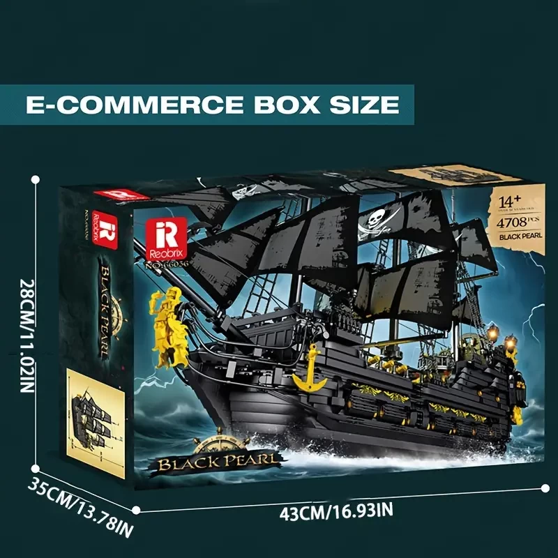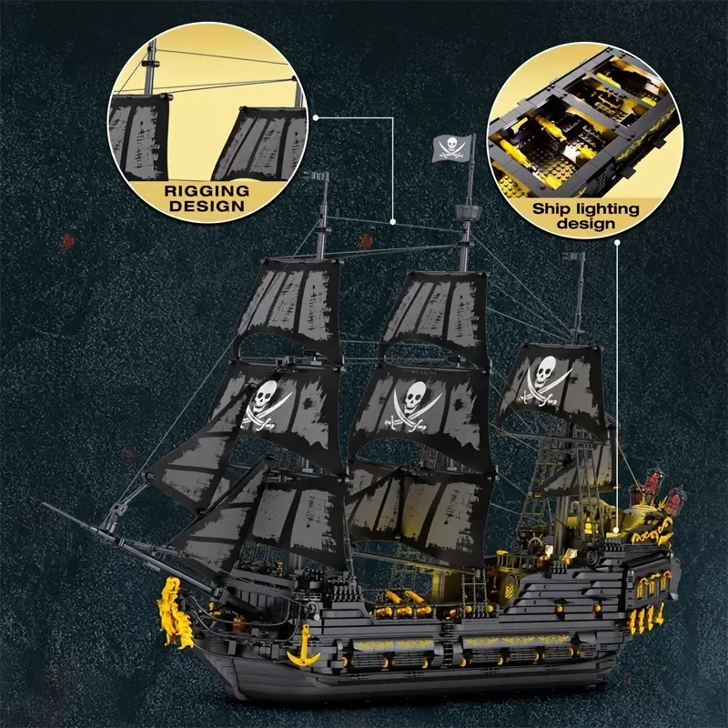 4708pcs Black Building Blocks, Assembly Toys, Simulative Pirate Ship, Creative Home Accessories, Party Table Decorations, Mini Assembly Building Blocks, Holiday Toys, Christmas Gifts