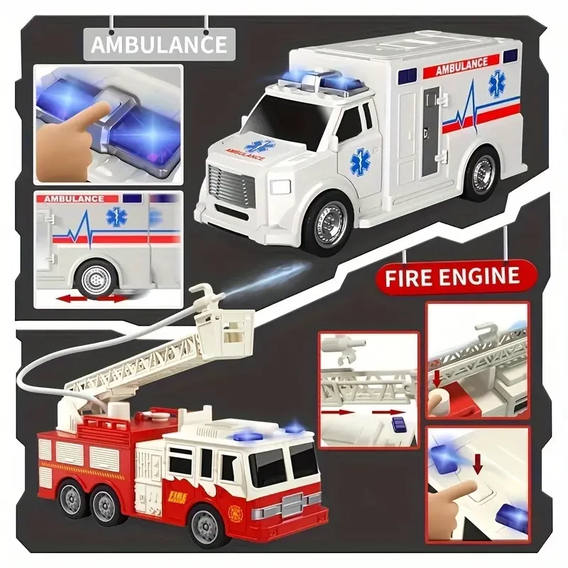 4pcs Emergency Rescue Vehicle Toys Set, For Children, Rescue Helicopter, Police Car, Fire Truck, Ambulance Friction Powered Toy, Halloween Gift Christmas Gift