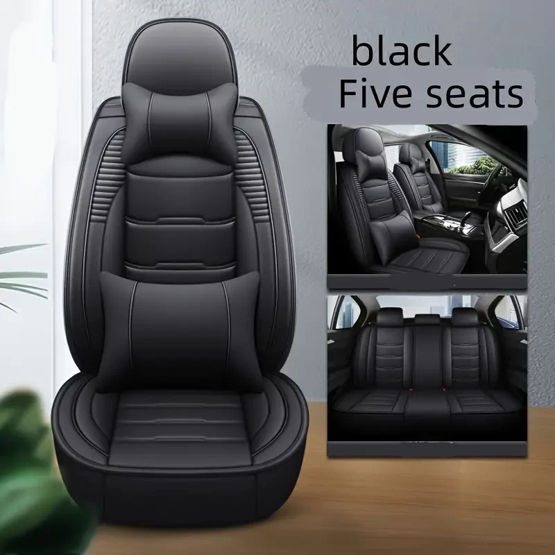 5 Fully Enclosed Car Interior Decoration Faux Leather Seat Covers, Four Seasons Fully Enclosed Seat Covers, Non-removable Car Seat Cushions