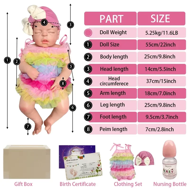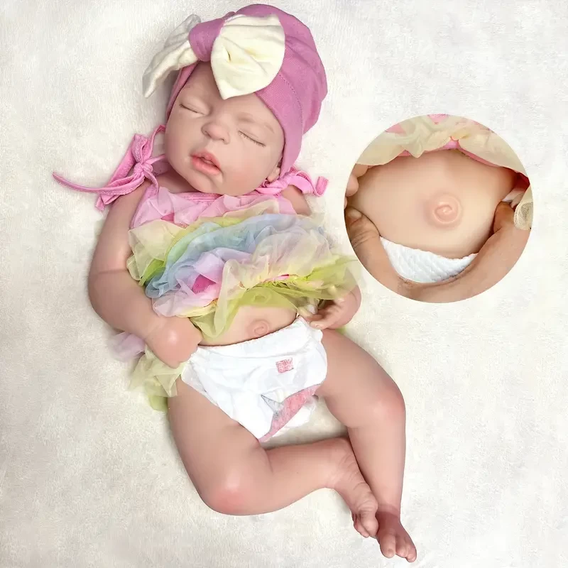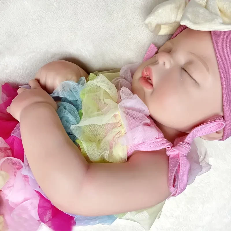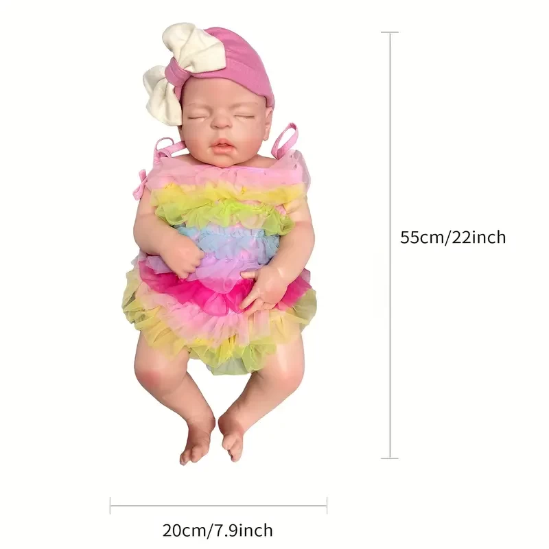 55CM/21.65inch All Silicone Girl Reborn Dolls, Painted Realistic Full Body Soft Solid Silicone Newborn Baby Dolls For Collection Gift