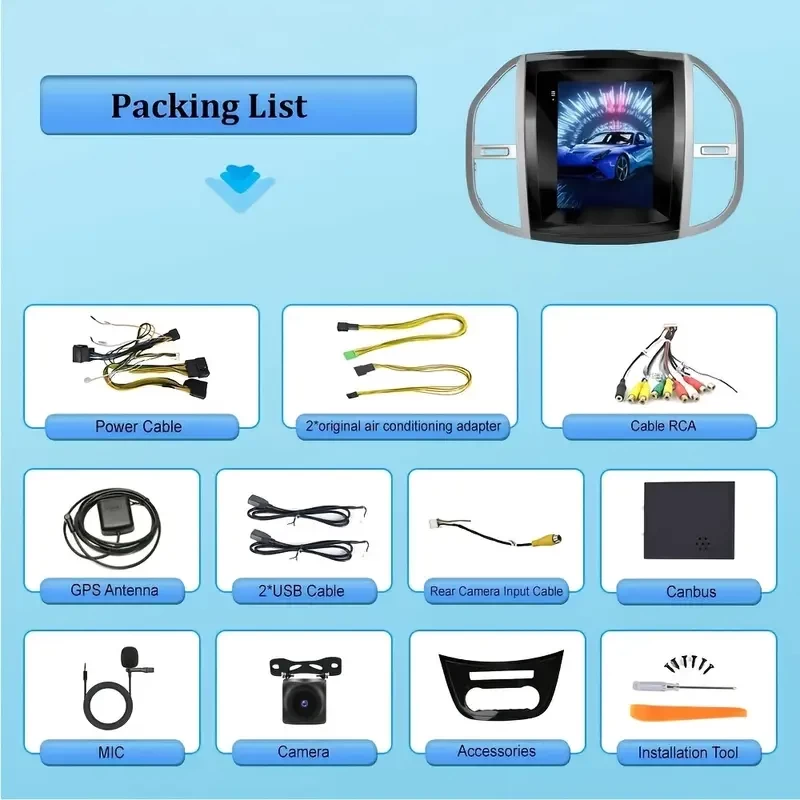 9.7'' For Benz Vito 2016 For Android System 2+64G 2Din Car Stereo Radio 2.5D Screen GPS WIFI HiFi For Carplay For Android Auto With AHD Camera & MIC