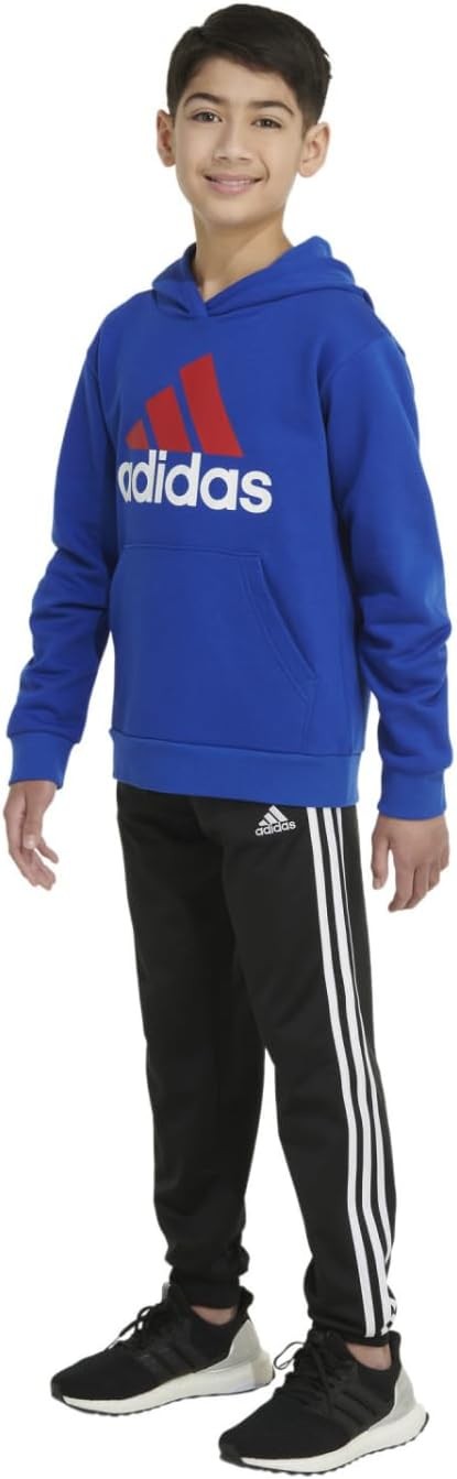 adidas Boys' Long Sleeve Fleece Pullover Hoodie, Brite Blue, Small