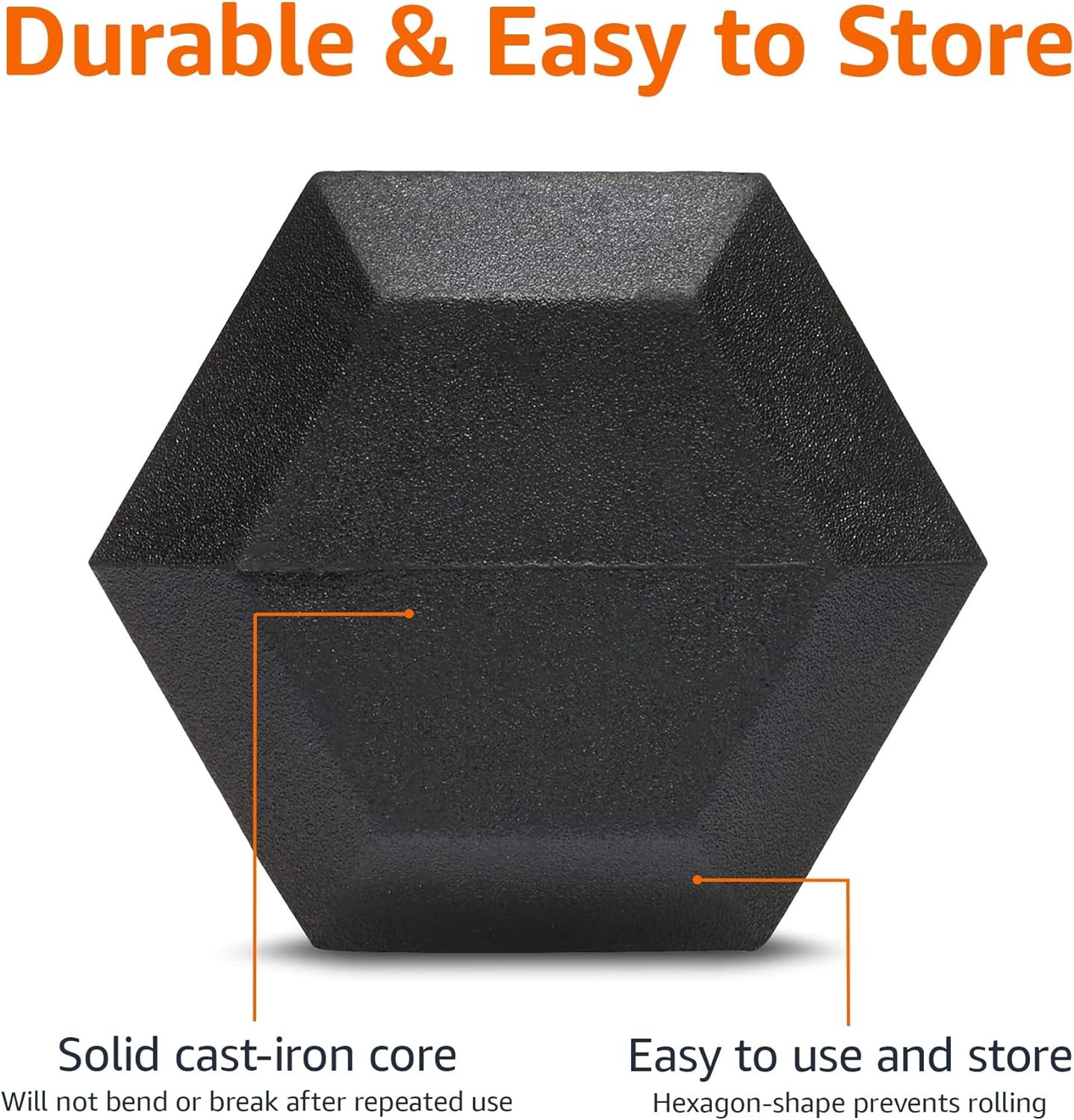 Amazon Basics Rubber Encased Exercise & Fitness Hex Dumbbell, Single, Hand Weight For Strength Training