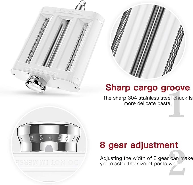 Antree Pasta Maker Attachment 3 in 1 Set for KitchenAid Stand Mixers Included Pasta Sheet Roller, Spaghetti Cutter, Fettuccine Cutter Maker Accessories and Cleaning Brush