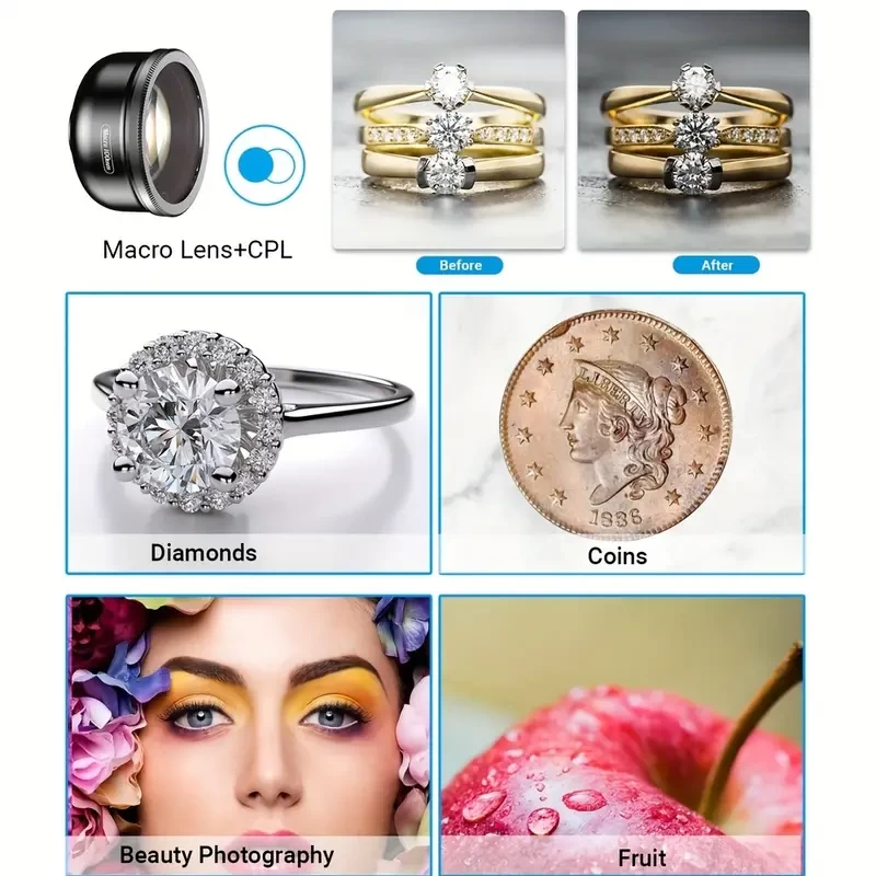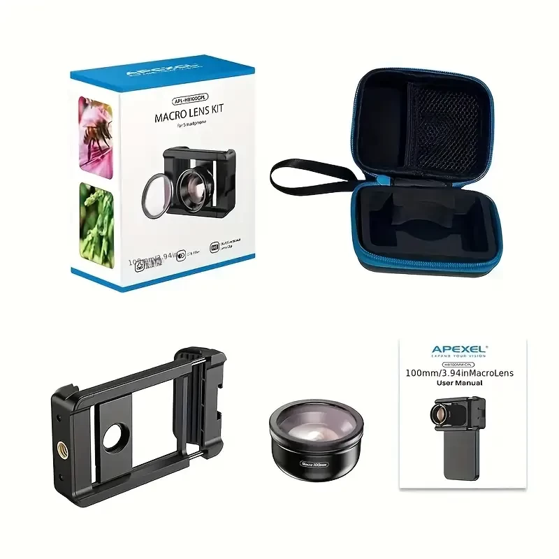APEXEL 100mm Macro Lens with CPL filter for Smartphone,HD Macro Photography Lens Universal Clamp Micro Lenses for iPhone, Samsung,Oneplus, Android Phone(Fits for Almost of),Cell Phone Macro Lens Attac