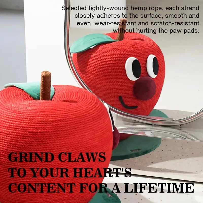 Apple Shape Wooden Cat Catching Ball Toy Cat Grinding Claw Sisal Rope Ball, Interactive Solid Apple Cat Catching Ball Pet Toy, Cat Scratching Post