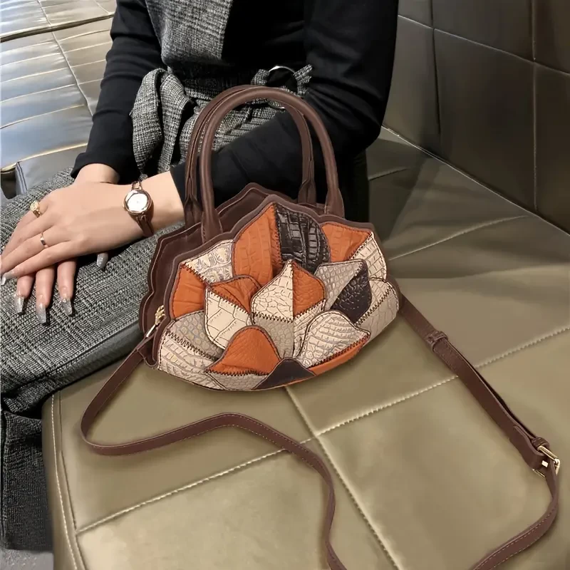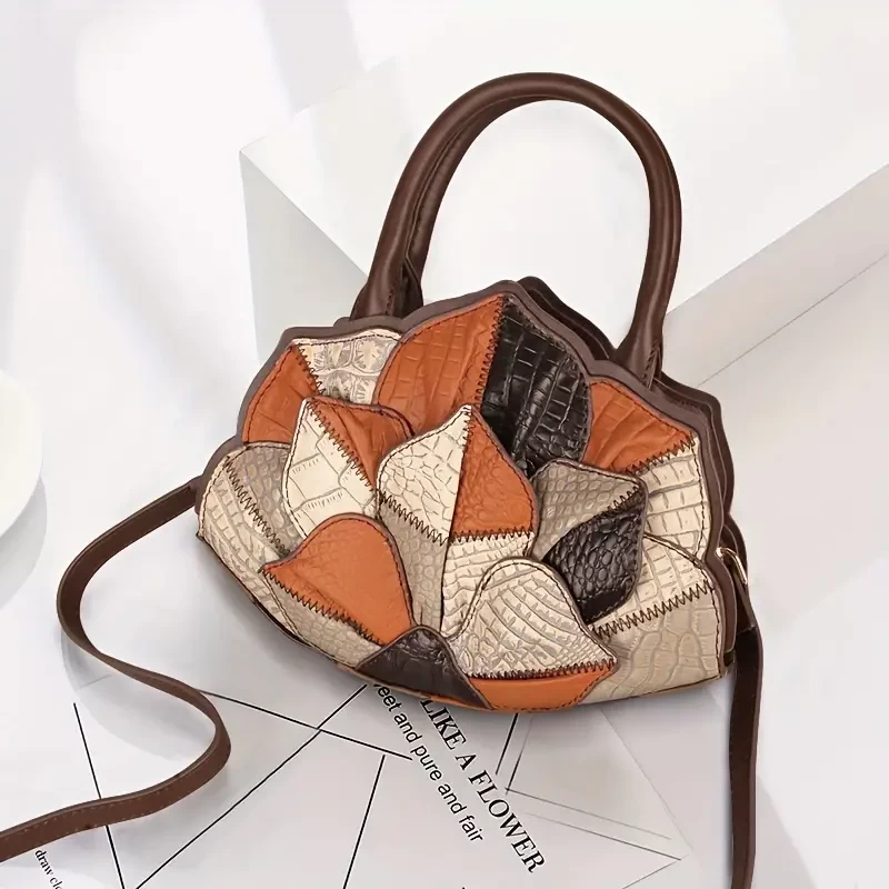 Argyle Pattern Handbag For Women, Luxury Genuine Leather Shell Bag, Fashion Tote Bag & Purse