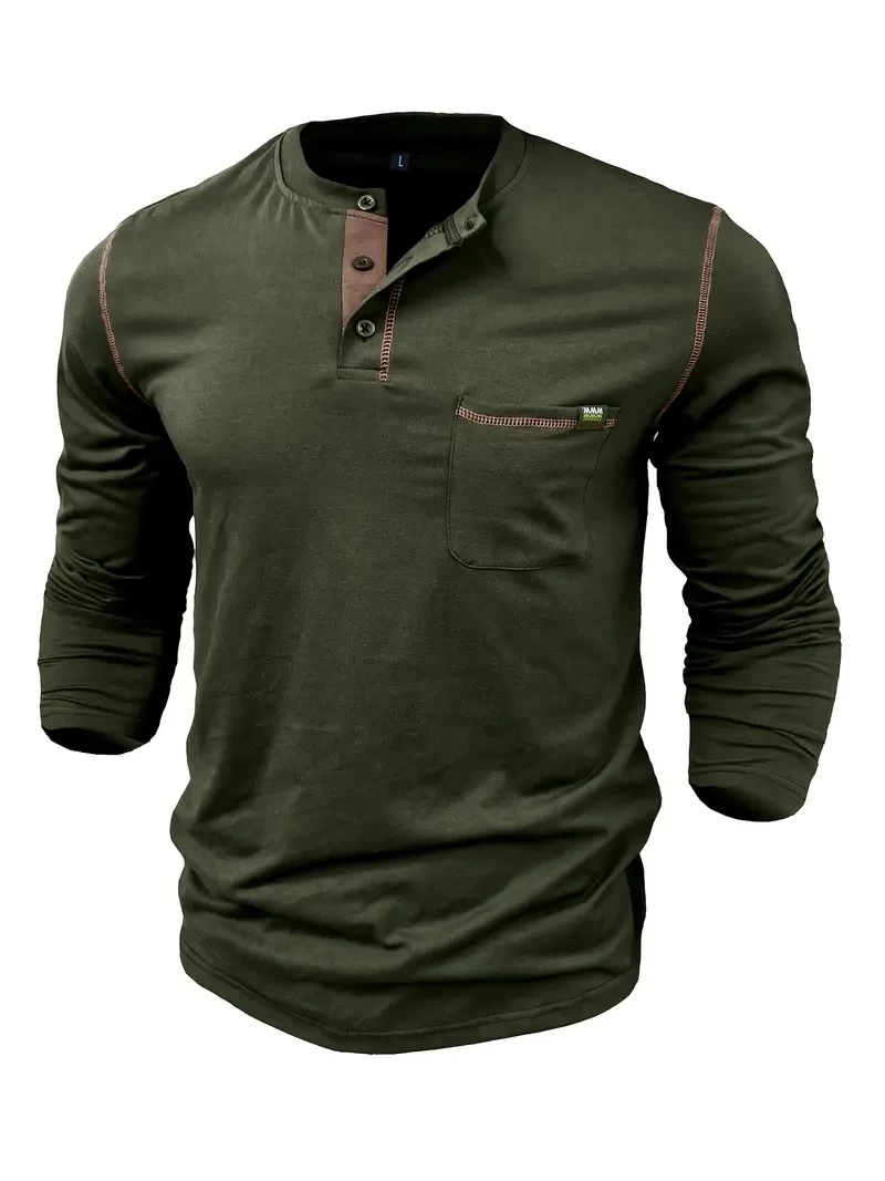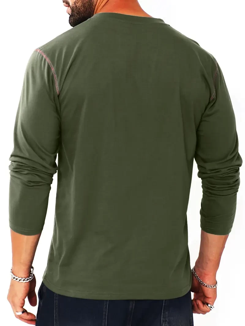 Autumn and winter new color contrast long sleeve T-shirt men's fashion color contrast line decoration cardigan Henry shirt fashion sweatshirt