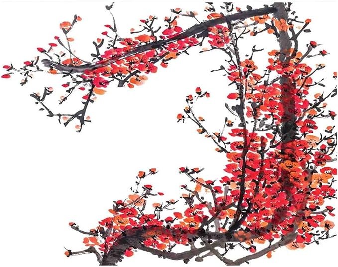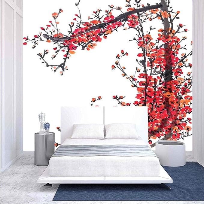 BBING COLOR 96x69 inches Wall Mural,Japanese Cherry Blossom Sakura Branch Made with Brush Artsy Image Peel and Stick Self-Adhesive Wallpaper Removable Large Wall Sticker Wall Decor for Home Office