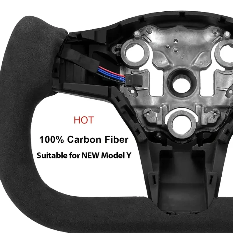 Black Suede Yoke Steering Wheel For Tesla For Model Y With Heating - Auto Parts - High-quality