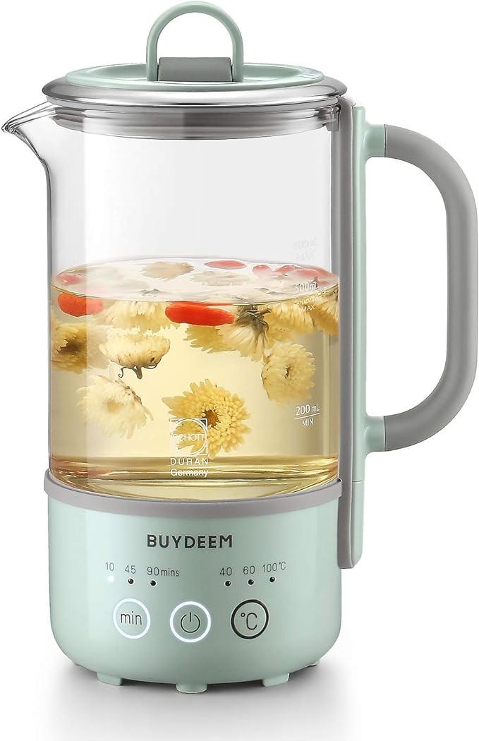 BUYDEEM K313 Travel Electric Kettle, Mini Healthy-Care Beverage Kettle, Tea Maker with German Schott Glass & Durable Pro 18/10 Pro Stainless Steel, 0.6L, Cozy Greenish