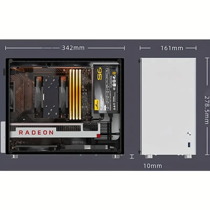 C2P Full Aluminum MATX Motherboard ATX Power Supply Side Transceiver Box Mini Game Assembly Computer Motherboard Desktop Case