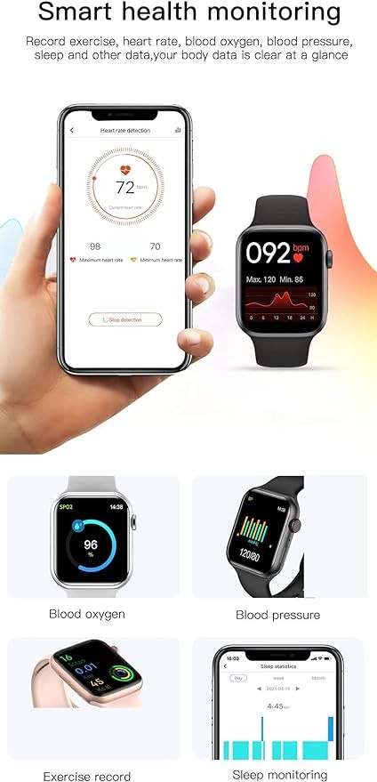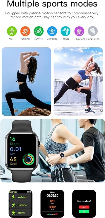 Calibree Watch Series 9, 2.3'' Full HD Smart Watch for Android/iPhone, IP68 Waterproof Fitness Tracker with Heart Rate/Sleep/Blood Oxygen Monitor, BP, Pedometer, Games, Smart Watches for Men & Women