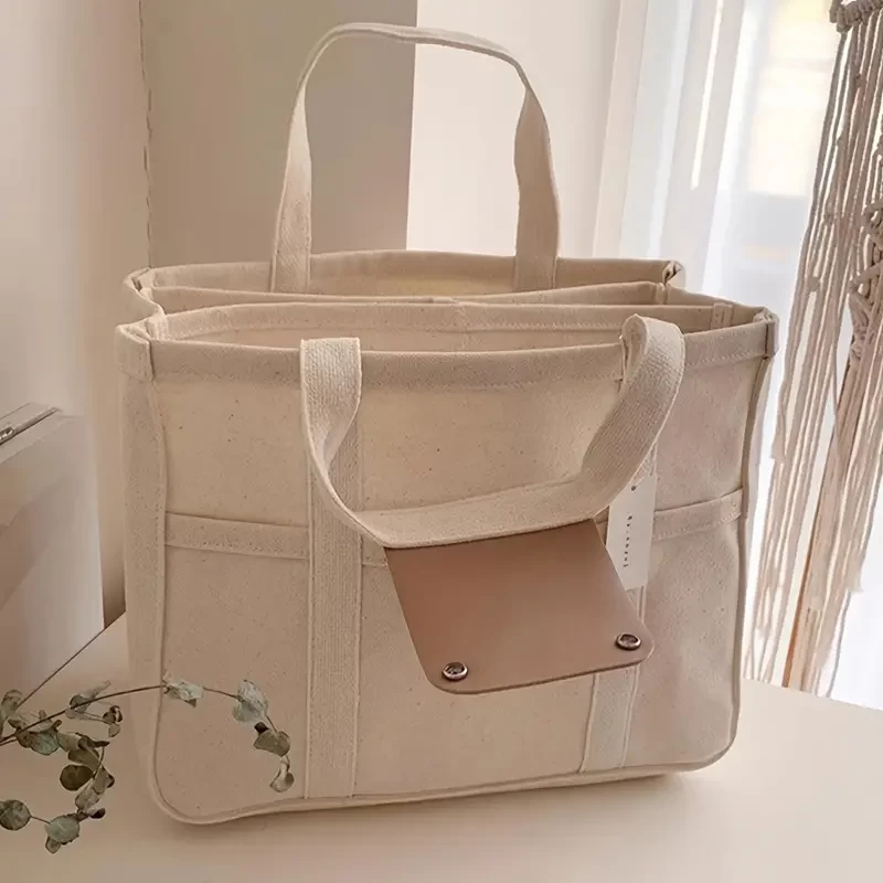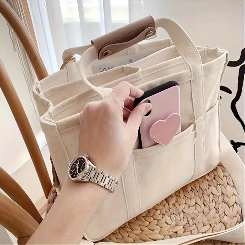 Casual Canvas Handbag, Multi Pockets Crossbody Bag, Portable Storage Bag For Going Out