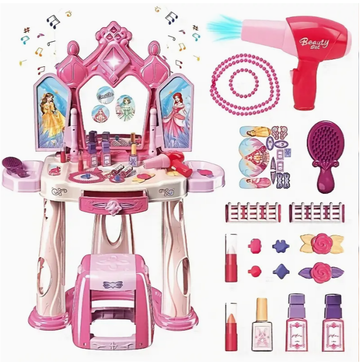 Children's Dresser Toy Dresser set with lights and sounds, door opening and closing action, imitation play, girl's dresser set Toy Princess toy birthday gift, girl Boy age 3 4 5 6 7