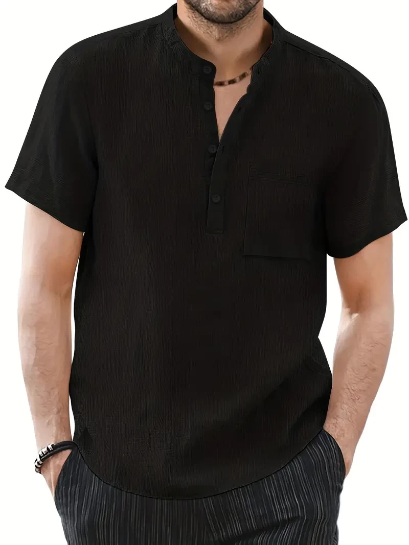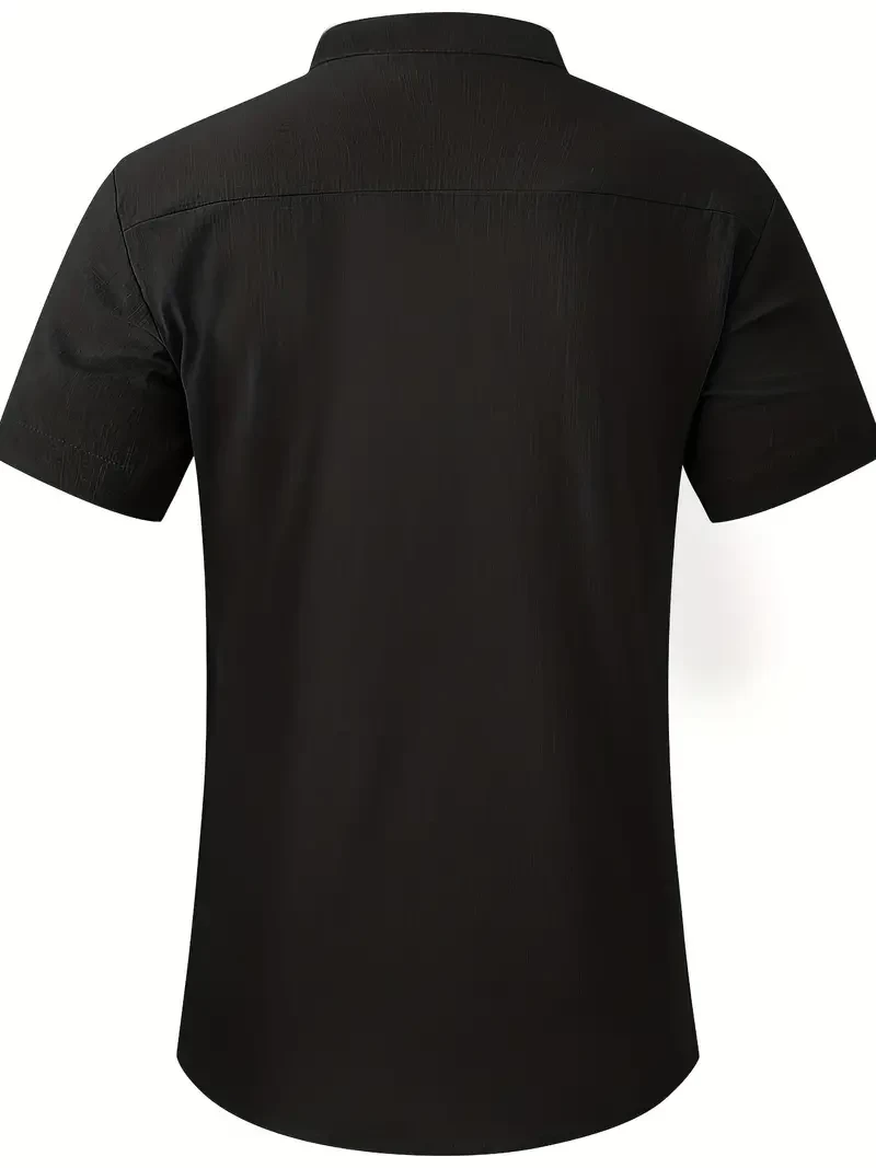 Classic Design Solid Color Men's Casual Button Up Short Sleeve Lightweight Polo Shirt With Chest Pocket, Men's Polo For Summer, Tops For Men