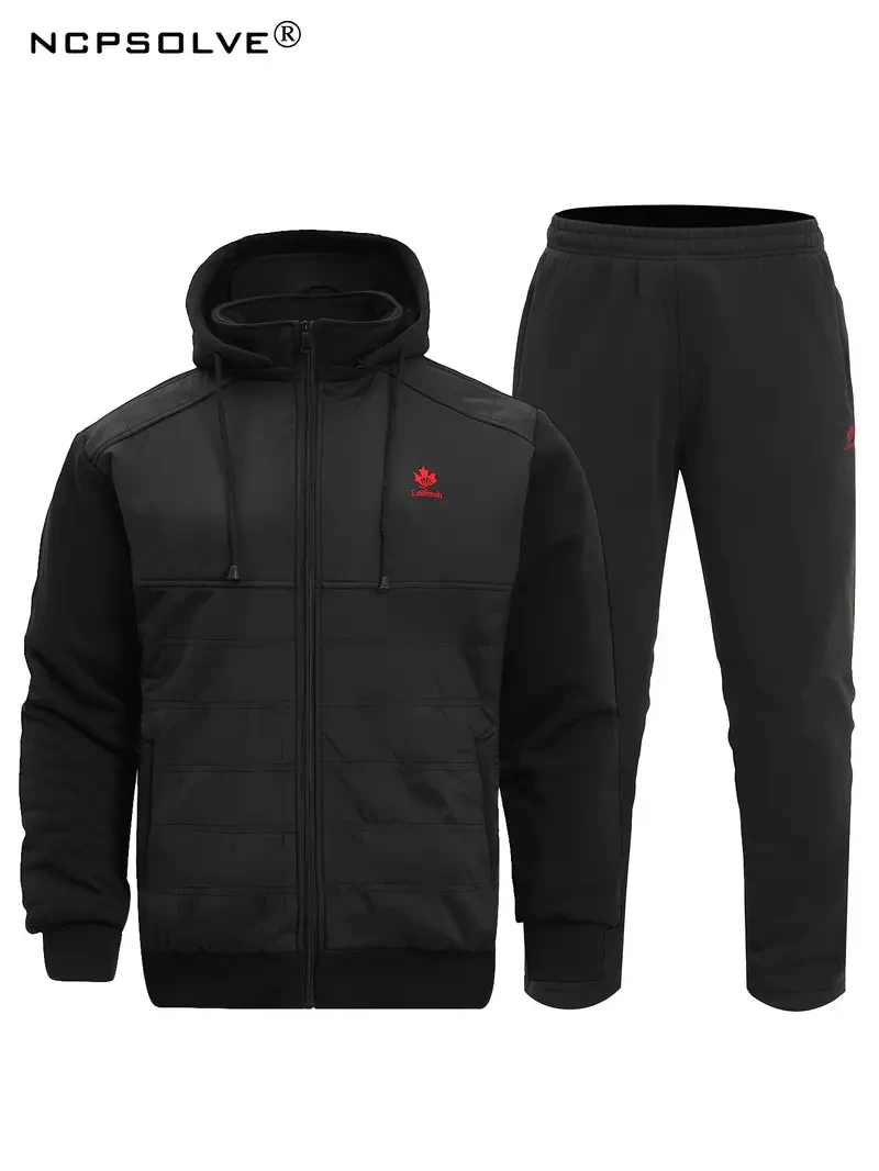 Classic Men's Warm Athletic 2Pcs Tracksuit Set Casual Full-Zip Sweatsuits Long Sleeve Hoodie And Jogging Pants Set For Gym Workout Running For Winter Fall