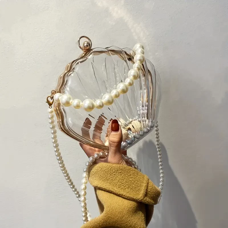 Clear Acrylic Shell Shaped Bag, Trendy Chain Crossbody Bag, Women's Niche Design Novelty Purse