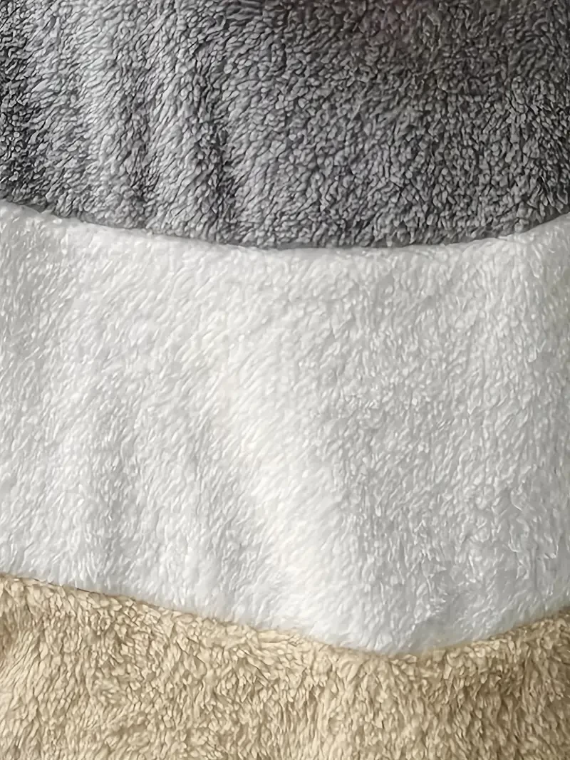 Color Block Fuzzy Hooded Coat, Casual Long Sleeve Winter Warm Outerwear, Women's Clothing