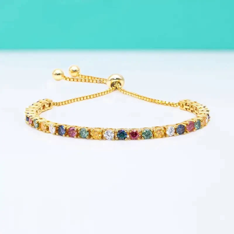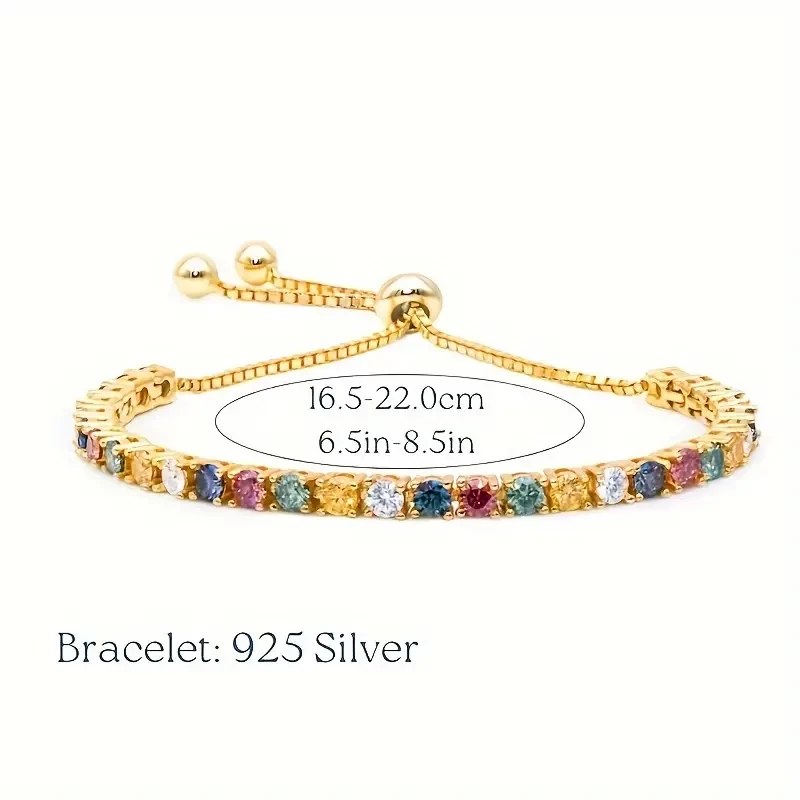 Colorful 15 Carats Moissanite Chain Bracelet Adjustable Shiny Hand Chain Bracelet The Best Gift For Your Loved One Wedding & Engagement Gift Valentines Day Decoration Gift
