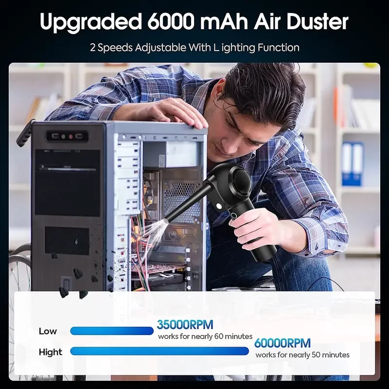 Compressed Air Duster Electric 60000RPM Rechargeable Cordless Air Blower Compressed Air For Cleaning Computer Keyboard Camera