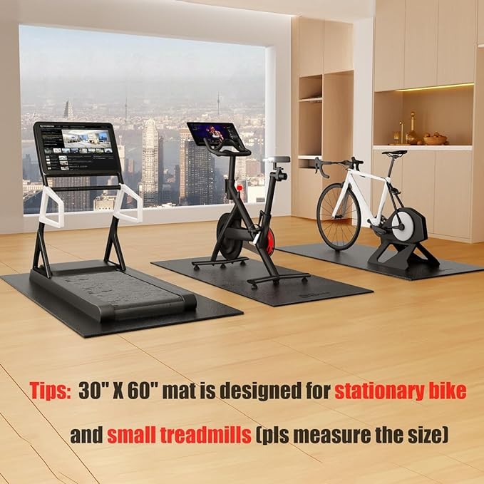Cycleclub Bike Mat Compatible with Peloton Bike Elliptical Treadmill Mat, 6mm Thick, Under Exercise Bike Trainer Mat Pad for Stationary Indoor Spin Bike,Hardwood Floor Carpet Black Gym Equipment Mat