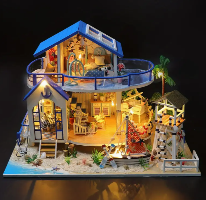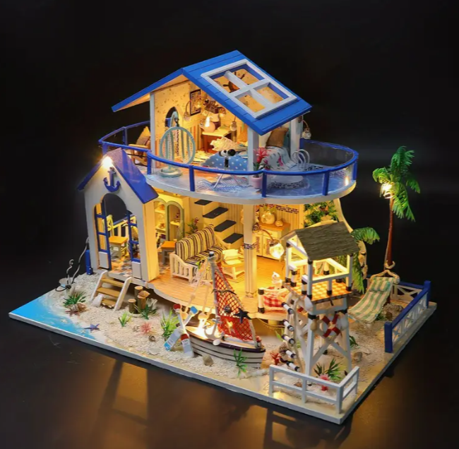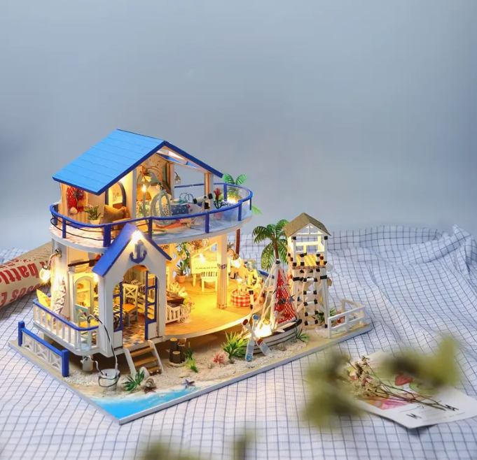 Diy Mini Seaside Villa 3D Puzzle Kit - Cote d 'Azur Villa model, hand assembly process details - Educational toys for children over 14 years old - Creative birthday and Christmas gifts (without glue/b
