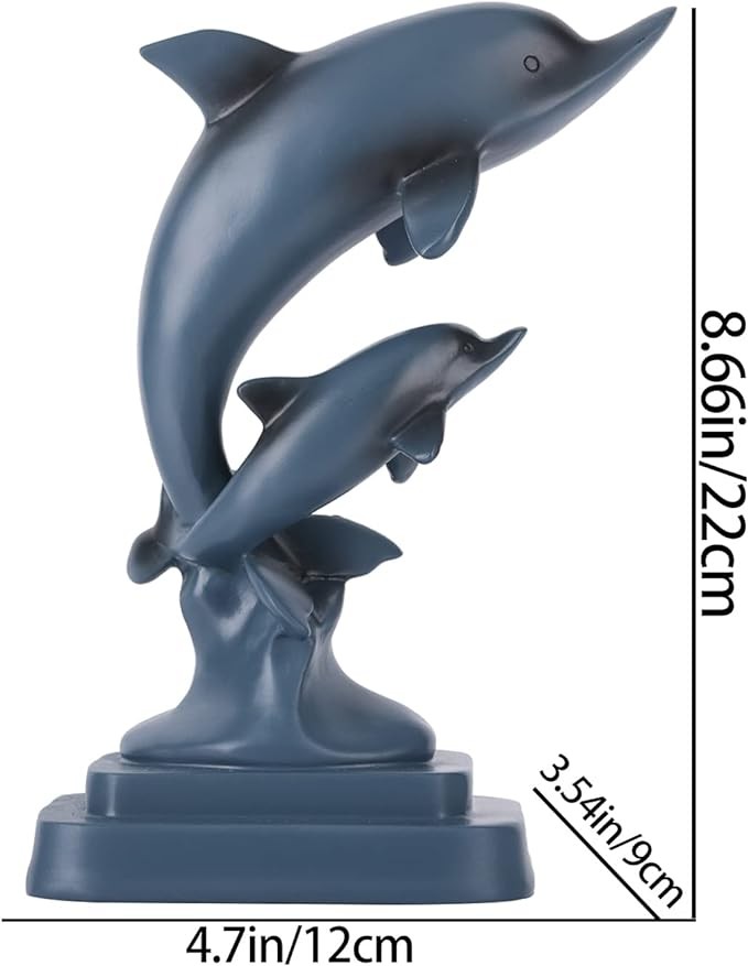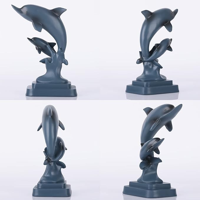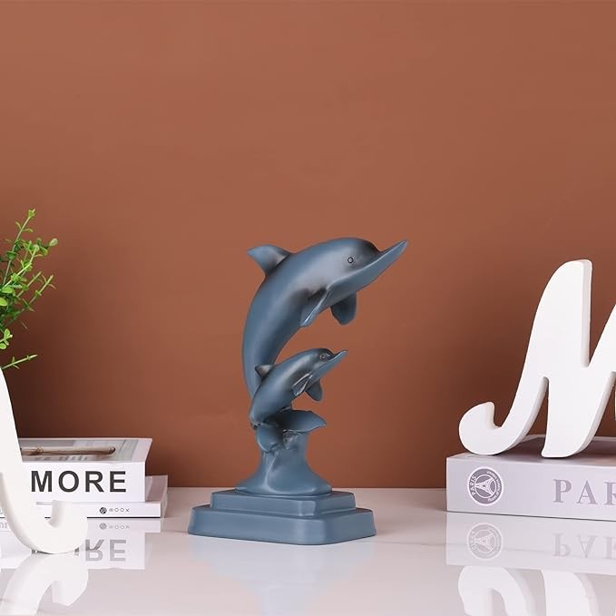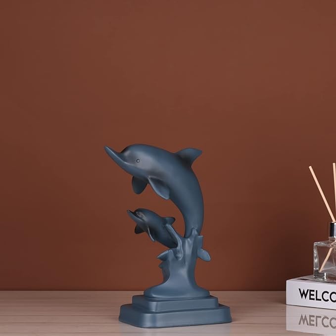 DOVDOV Dolphin Couple statue, Blue home decoration, Dolphin decoration, Modern home decoration, resin Marine animal decoration for men's office, entrance table, shelf decoration statue