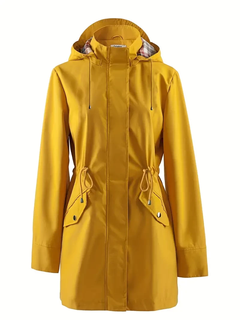 Drawstring Waist Hooded Zip Up Coat, Casual Long Sleeve Coat For Fall & Winter, Women's Clothing