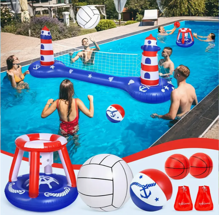 EagleStone Pool Volleyball Net and basketball stand Inflatable pool float toys Swimming water games for adults and children 8-12 Youth Volleyball court Pool float