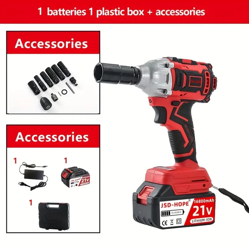 Electric Wrench, Large Torque, Brushless Impact Air Gun, Rechargeable Scaffolding Tool, Socket, Lithium Battery, Heavy-duty Automotive Repair Tool.