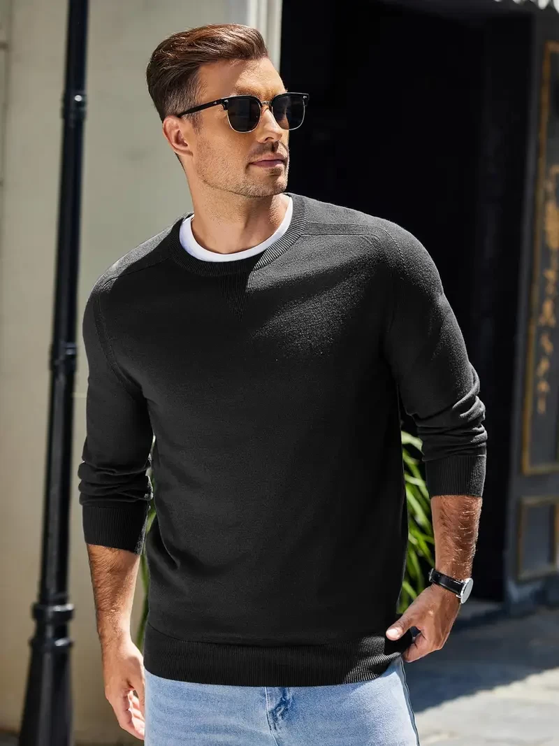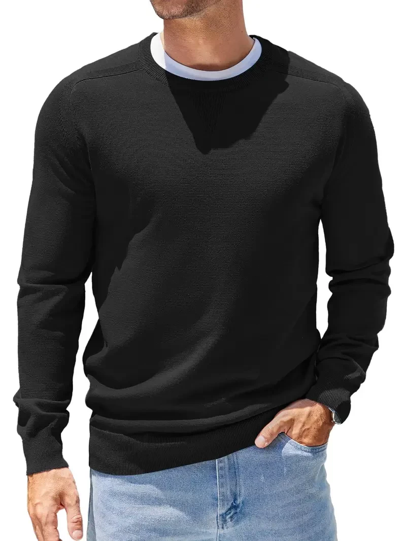 ELESOL Men's crew neck sweater Long sleeve lightweight knit slim-fit sweater