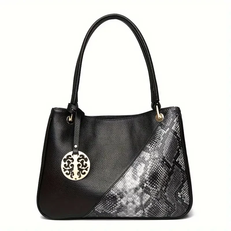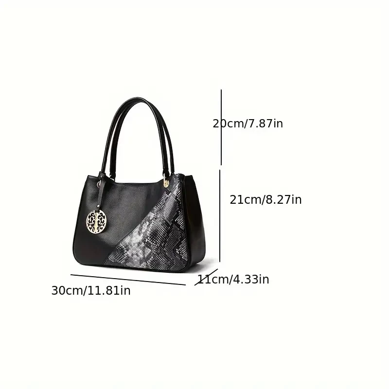 Fashion Top Handle Satchel, Genuine Leather Tote Bag, Women's Casual Handbag, Shoulder Bag & Purse