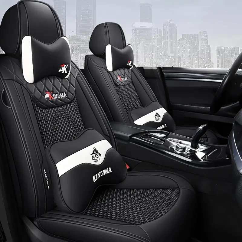 Faux Leather + Ice Silk Car Seat Cover Four Seasons Universal Motors Seat Cushion Fully Encircling Seat Cover Five Seat Protective Covers