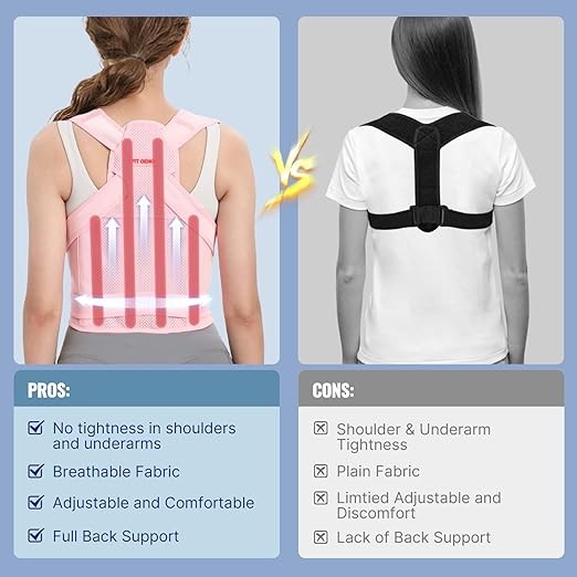 Fit Geno Back Brace Posture Corrector for Women: Shoulder Straightener Adjustable Full Back Support Upper and Lower Back Pain Relief - Scoliosis Hunchback Hump Thoracic Spine Corrector Pink Small