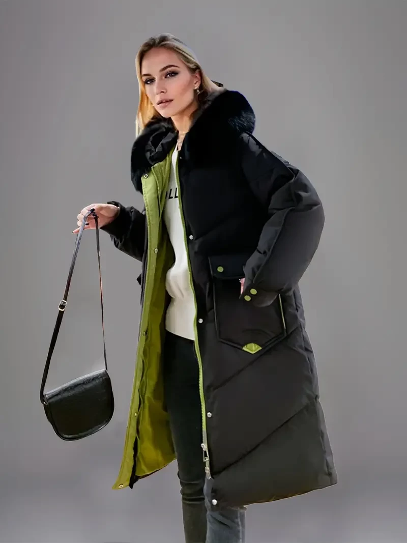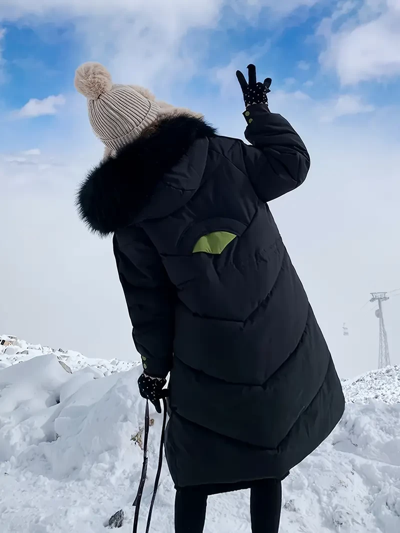 Fluffy Trim Hooded Warm Coat, Elegant Long Sleeve Winter Outerwear, Women's Clothing