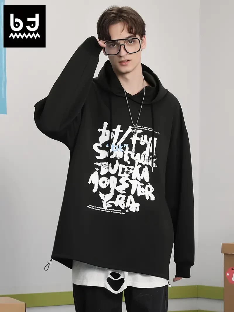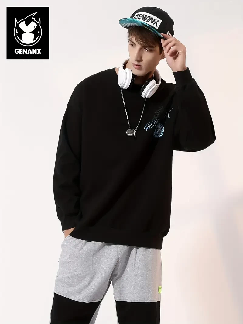 Genanx Men's Trendy Loose Fleece Sweatshirt, Casual Slightly Stretch Breathable Pullover Top For Outdoor